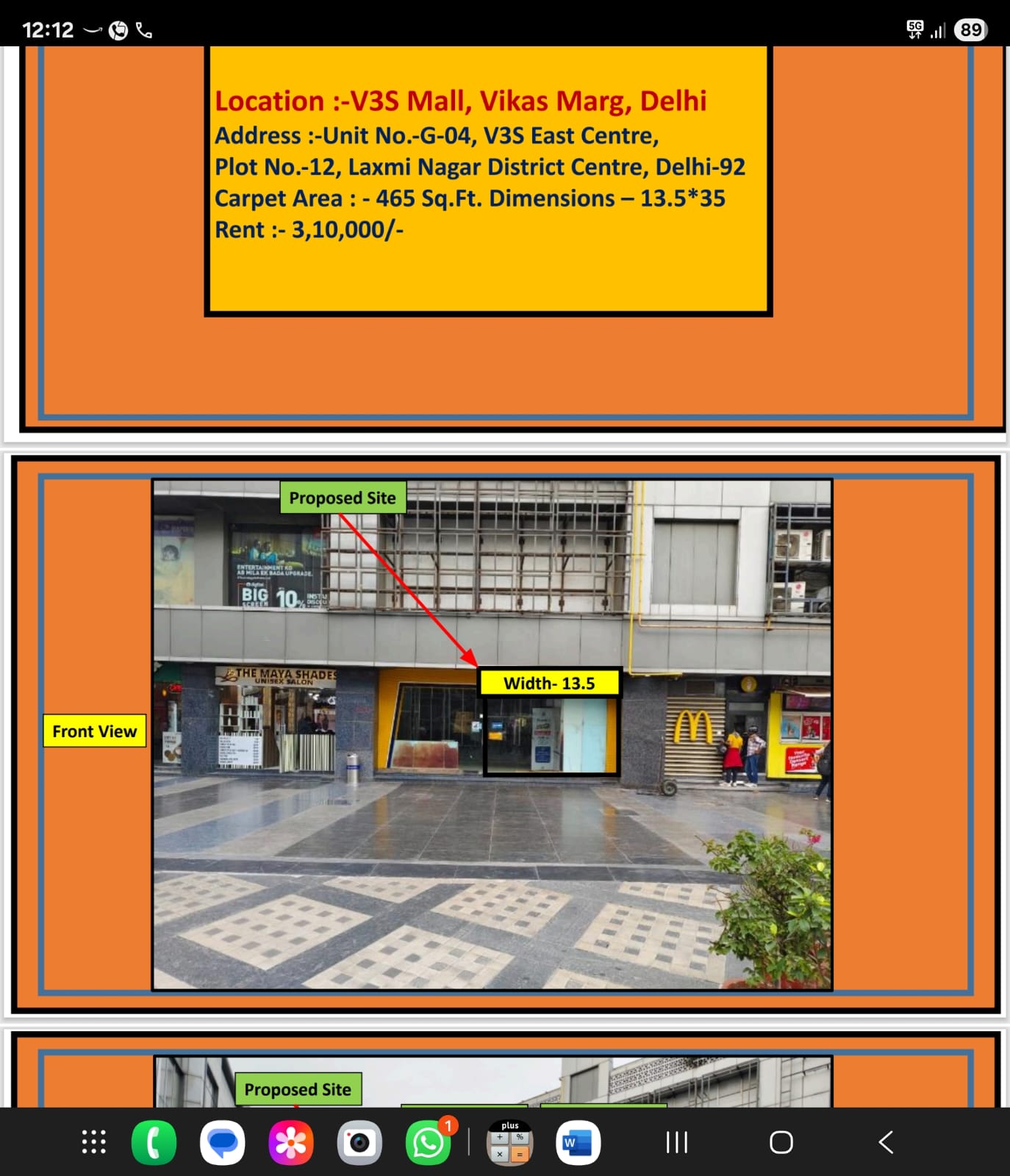 Rent : Rs.310 per sq ft